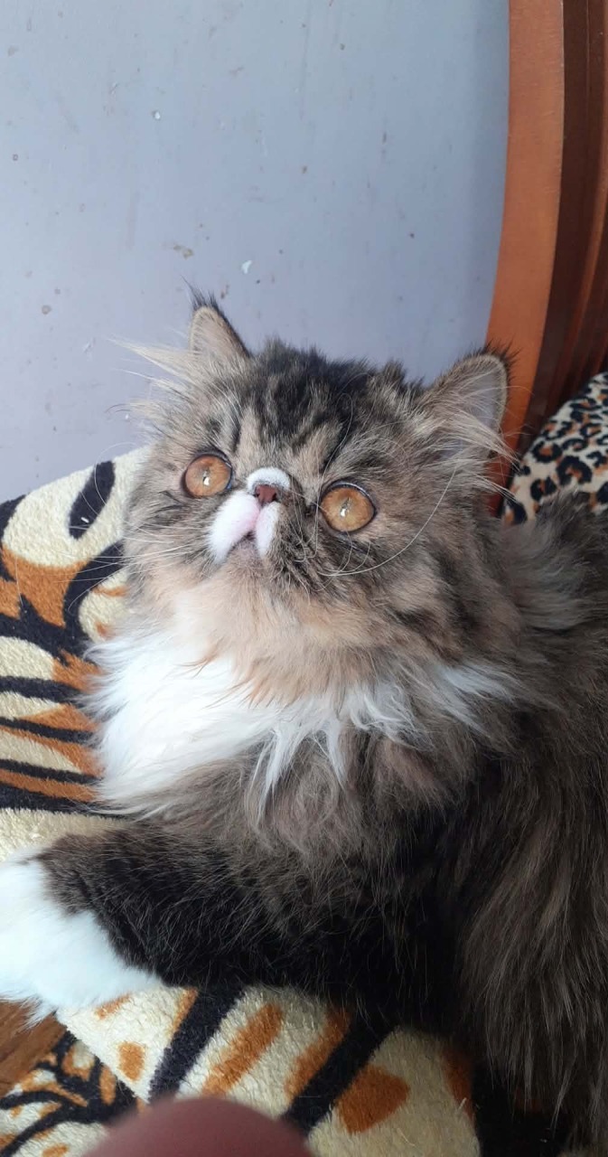 Pręgowany jestem KOT pełen wszelkich kocich cnot. Perskie futro mam puszyste, bursztynowe oczy śliczne. Czekam sobie na człowieka, który pewnie też gdzieś czeka, na takiego jak ja kotka, co to będzie jak pieszczotka - będzie mruczał, patrzył w oczy, każde serce zauroczy.